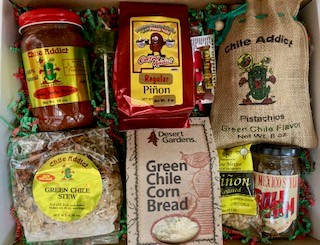 Coffee Addict Pinon Coffee and Chile Addict products in a box.