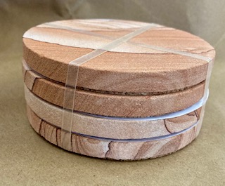 These all-natural coasters are cut from the finest most absorbent solid sandstone available. The porous nature of the stone naturally absorbs moisture, and the natural cork baking protects furniture. The natural variations in the stone color and patterns are what make each coaster unique.